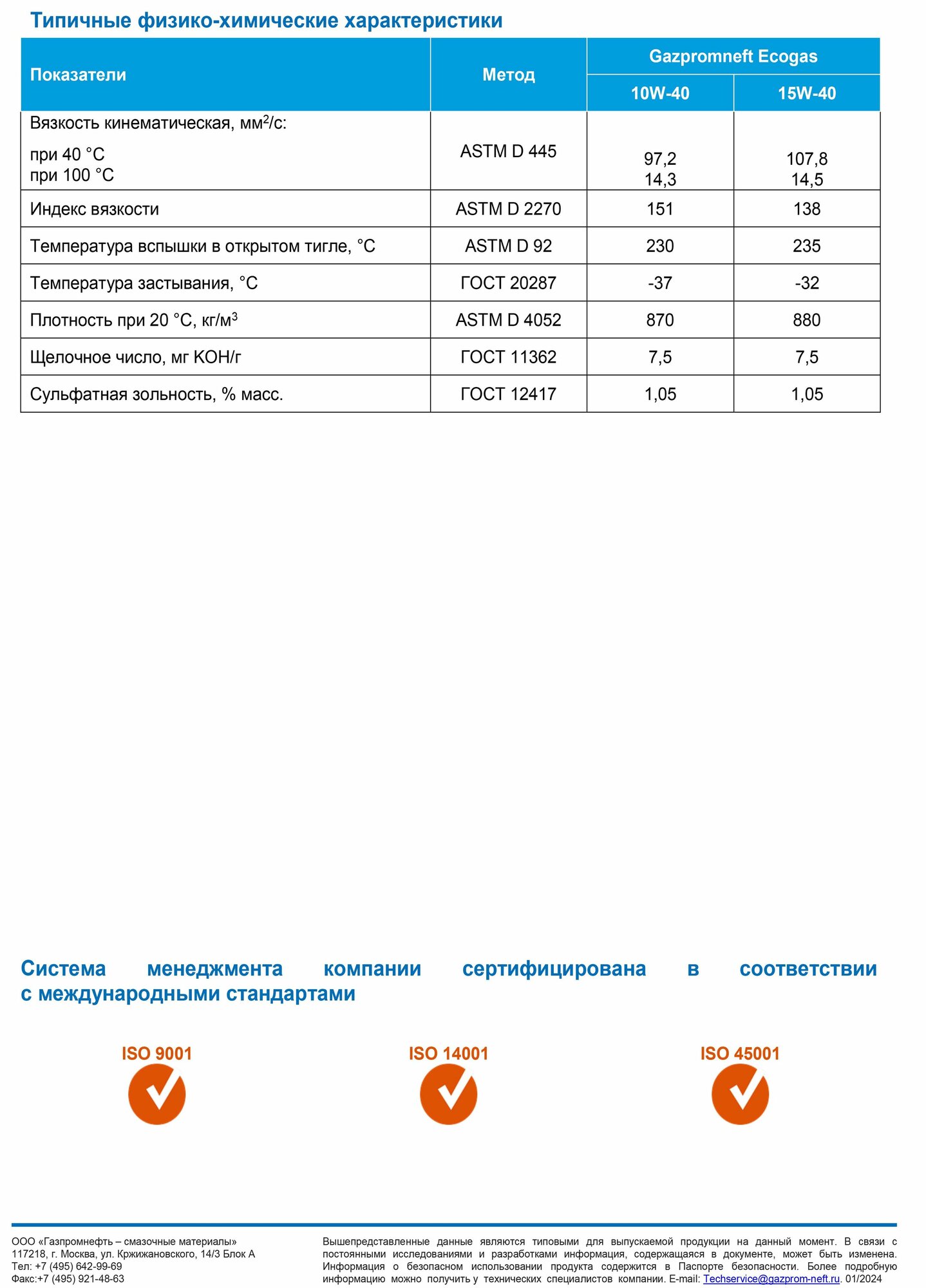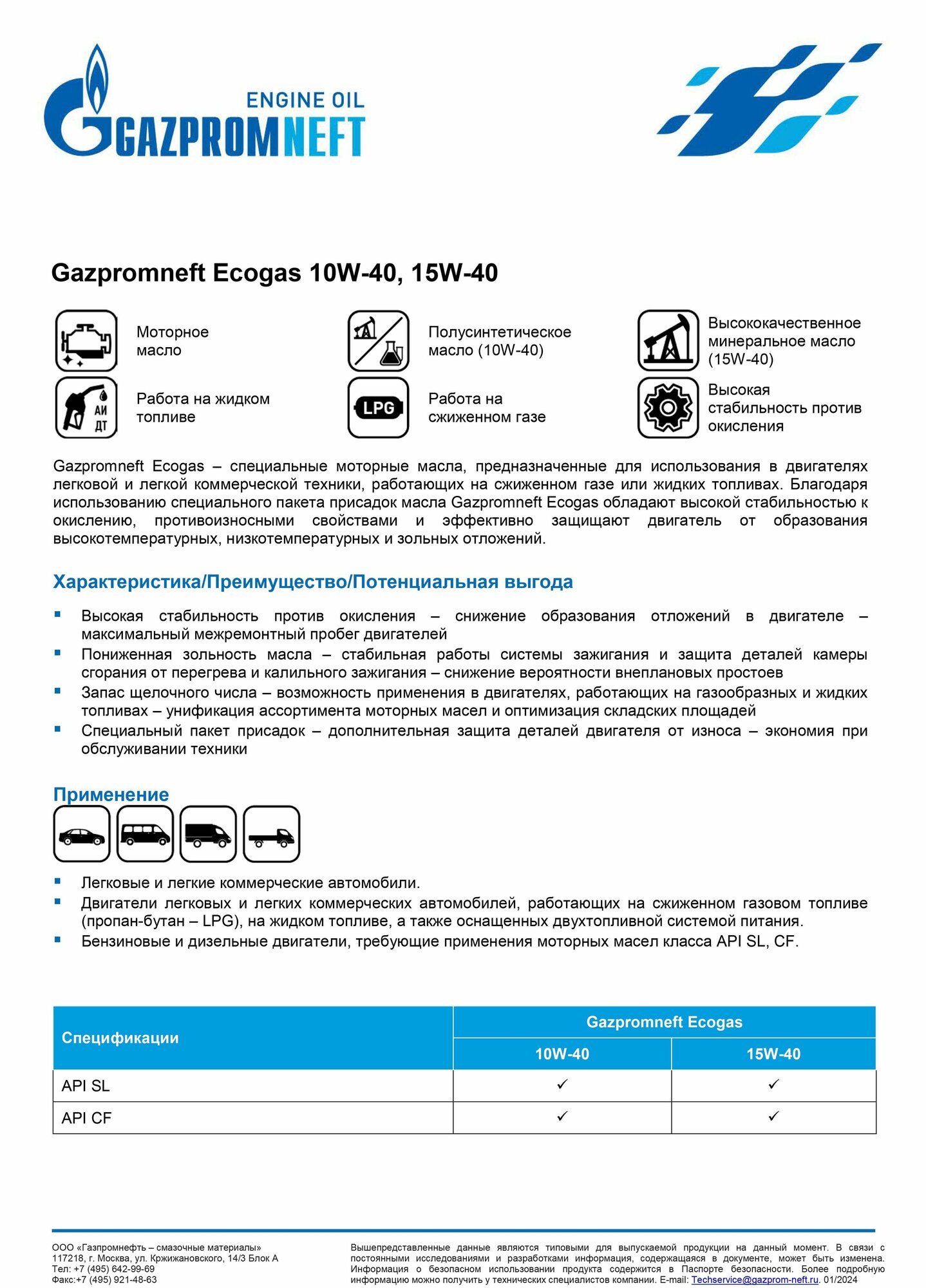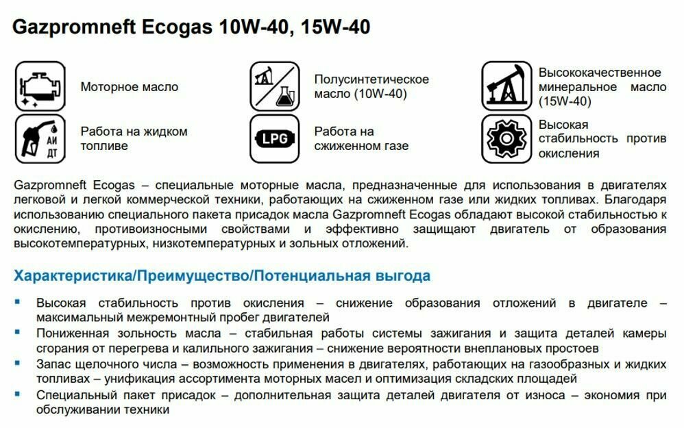 Масло Gazpromneft Ecogas 10W-40 1Л#, Фасовка:1л Gazpromneft арт. 253142150