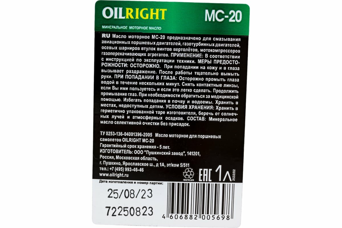 OIL RIGHT 2532 OILRIGHT МС-20 1 Масо моторное авиационное (SAE 50)