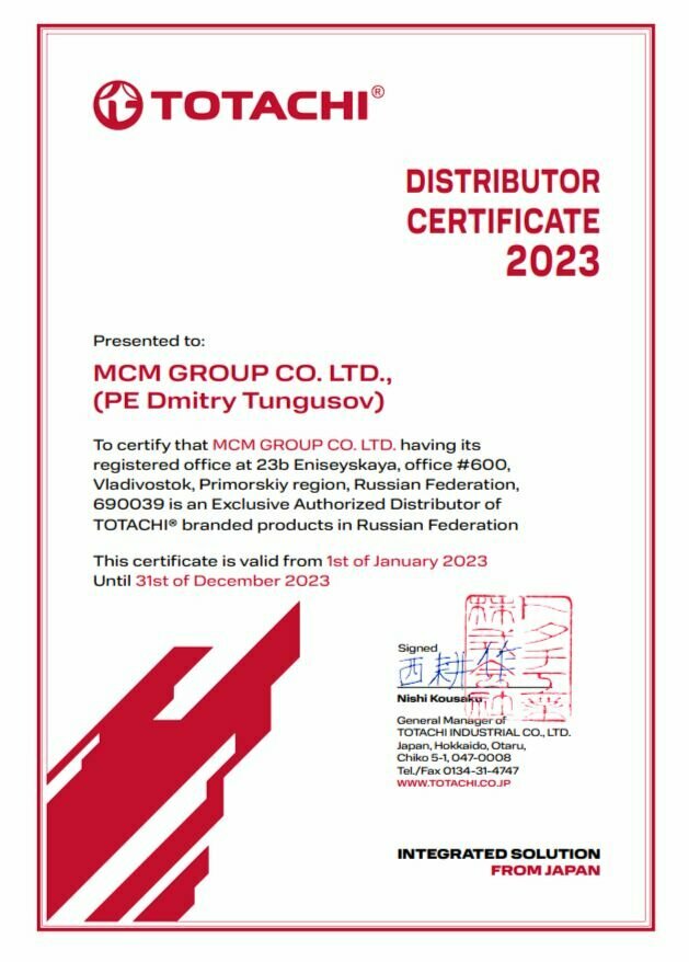 | Плюсы: | По соотношению цена-качество, на мой взгляд - оптимально. Использовал и для дизельного двигателя (Premium Diesel 5W-40) и бензинового (Grand Touring 5W-40). Хорошо моет двигатель - особенно дизель. Масложера нет. Так же два года использую антифриз (SUPER LONG LIFE COOLANT -40). Не хуже других будет. Резюме - TOTACHI достойный производитель. Вопрос - как избежать подделок ? |