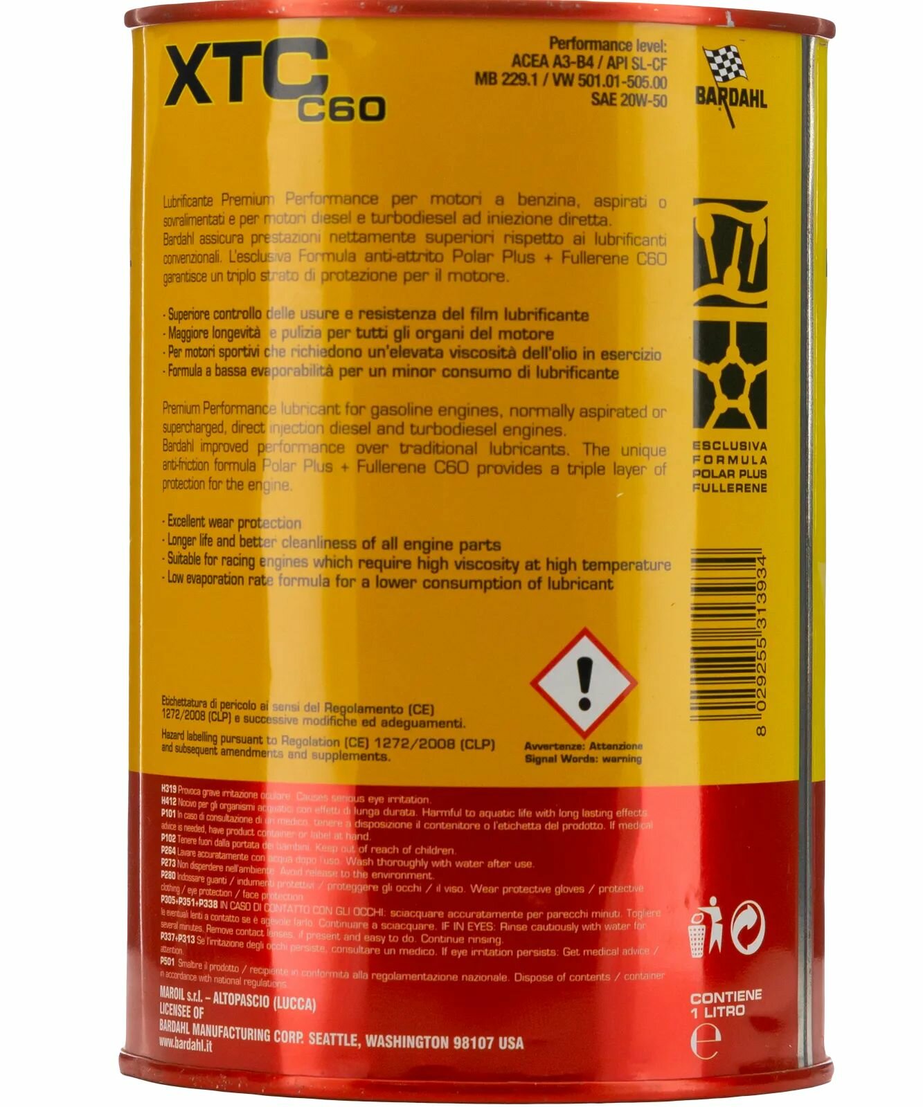 Специальное синтетическое моторное масло BARDAHL 20W50 SN/CF XTC C60 1л