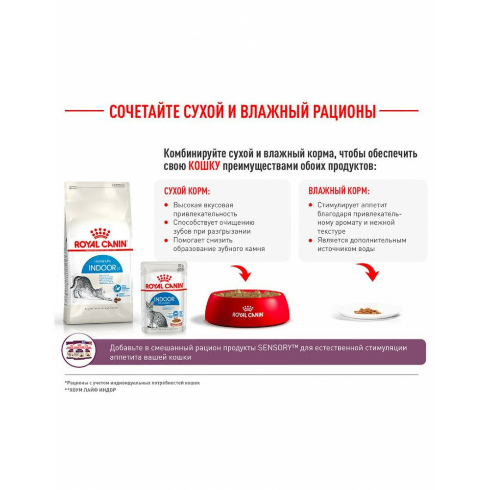 Корм для кошек сухой Роял Канин Indoor для живущих в помещении взрослых животных до 7 лет, гранулы с птицей 2кг / кошачья еда для ежедневного