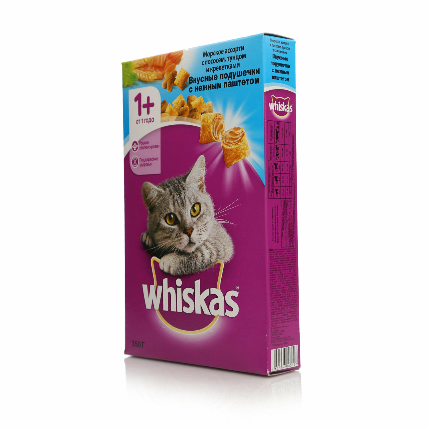 Корм для кошек Whiskas подушечки с паштетом лосось, тунец, креветки 350гр