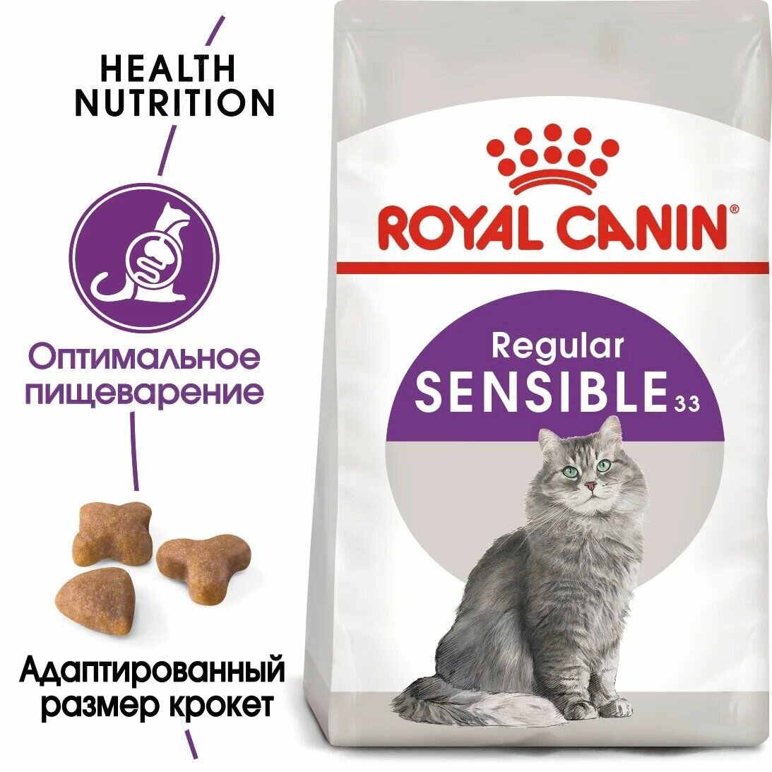 Корм сухой для кошек с чувствительным пищеварением ROYAL CANIN Sensible 33 привередливых в еде, от 1-го года до 10-ти лет, 2 кг