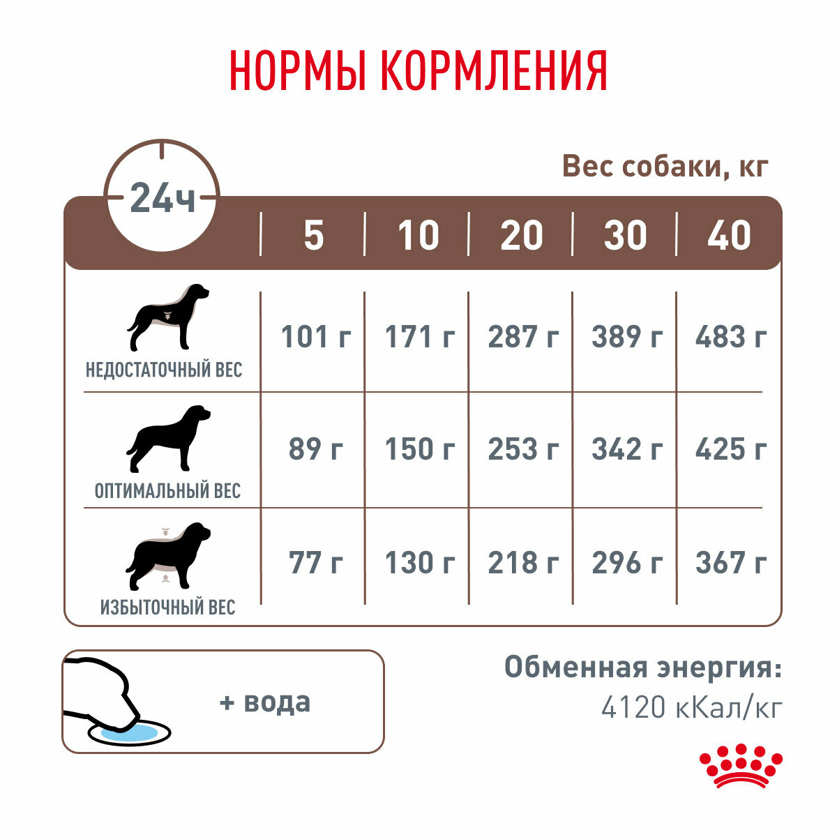 | Дозировка | см. таблицу. Корм готов к употреблению. Проследите, чтобы у вашей собаки всегда была свежая вода. Номер серии, регистрационный номер завода-изготовителя и срок годности указаны на упаковке. Хранить в сухом, прохладном месте |