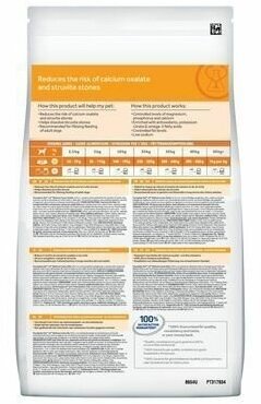 | Дополнительная информация | для растворения струвитных уролитов, для длительной поддержки собак склонных к образованию: струвитных, кальция оксалатных или кальция фосфатных кристаллов и уролитов (снижение частоты рецидивов), не рекомендуется: кошкам, щенкам, беременным и кормящим сукам, собакам,получающим одновременно вещества, закисляющие мочу, собакам с МКБ неструвитного типа, гиперлипидемией или панкреатитом (панкреатит в анамнезе или в случае риска развития панкреатита); без искусственных ароматизаторов, красителей и консервантов |