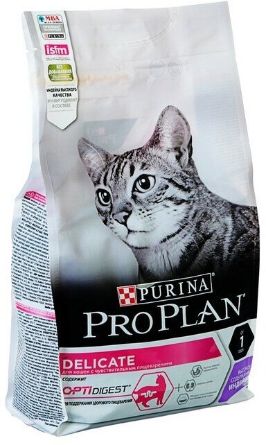 PRO PLAN DELICATE для взрослых кошек с чувствительным пищеварением, с индейкой, 1,5 кг