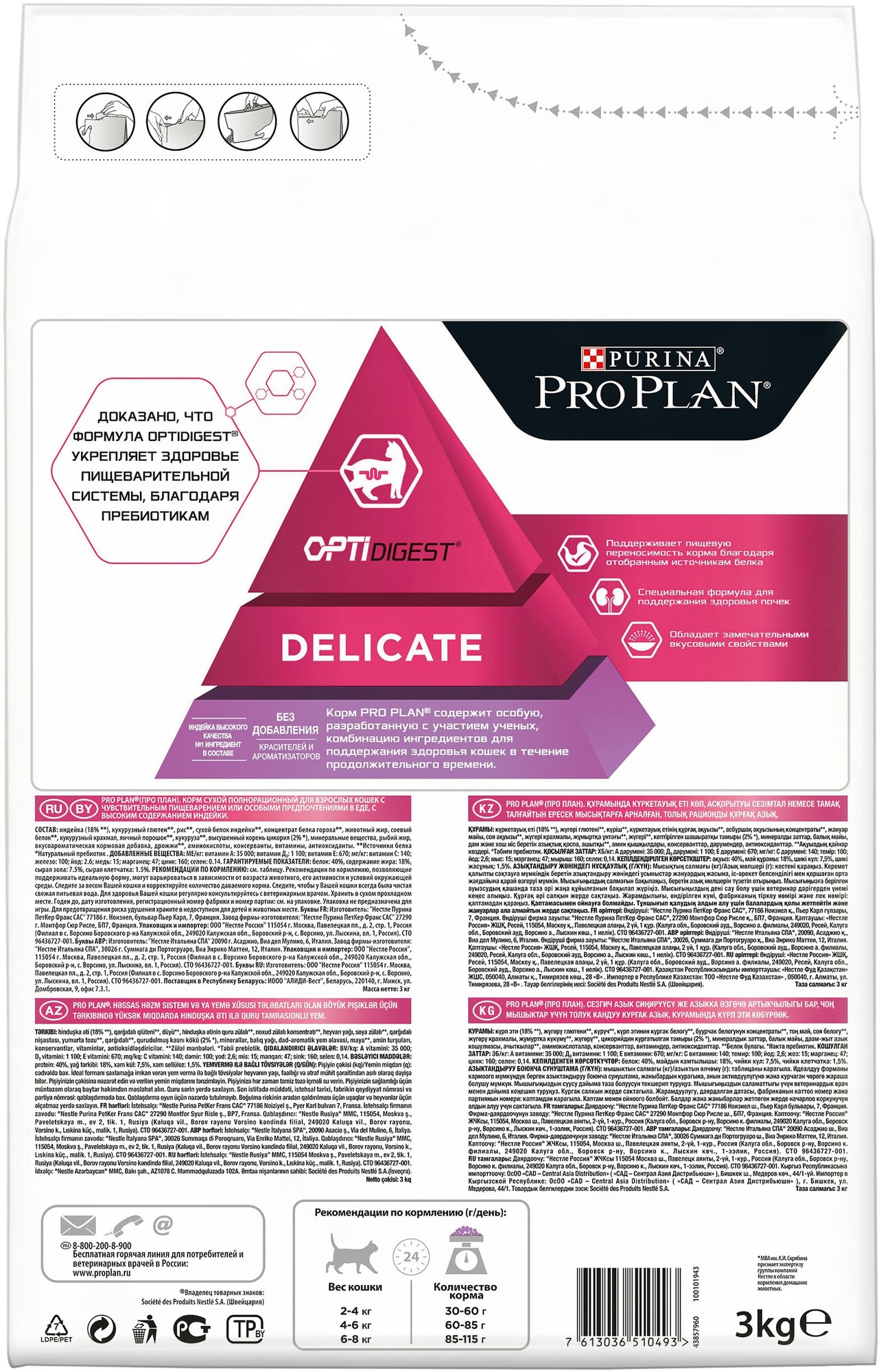 Корм для кошек Pro Plan Delicate, 3 кг, индейка с рисом