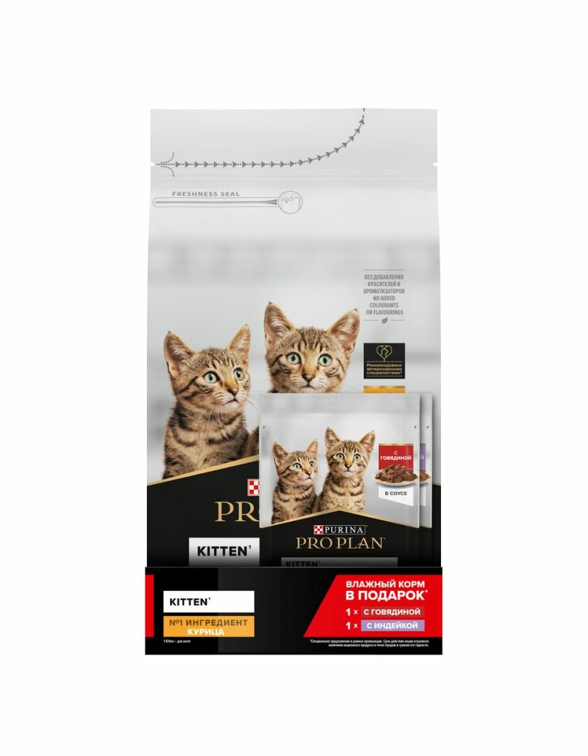 Сухой корм Pro Plan для котят от 1 до 12 месяцев, с высоким содержанием курицы, Пакет, 1,5 кг