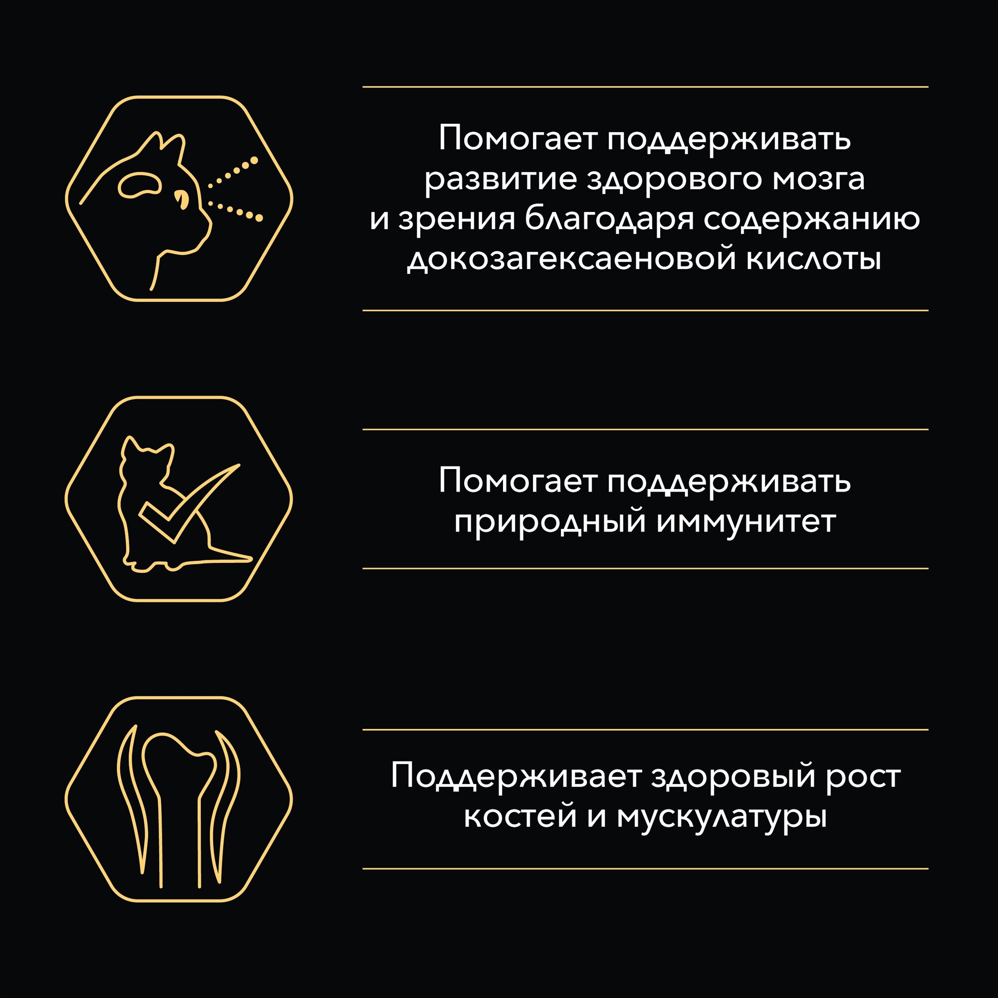 | Дополнительная информация | переводите котенка на корм Pro Plan® JUNIOR в возрасте 3-4 недели; для более легкого поедания корм следует смешивать с водой; постепенно уменьшайте количество добавляемой для размачивания воды до того момента, когда котенок сможет есть не размоченный корм; придерживайтесь 2-3 разового кормления или давайте корм по необходимости; для беременных кошек минимальная суточная норма 90 г/день, для кормящих – минимальная суточная норма 180 г/ день или по необходимости |
