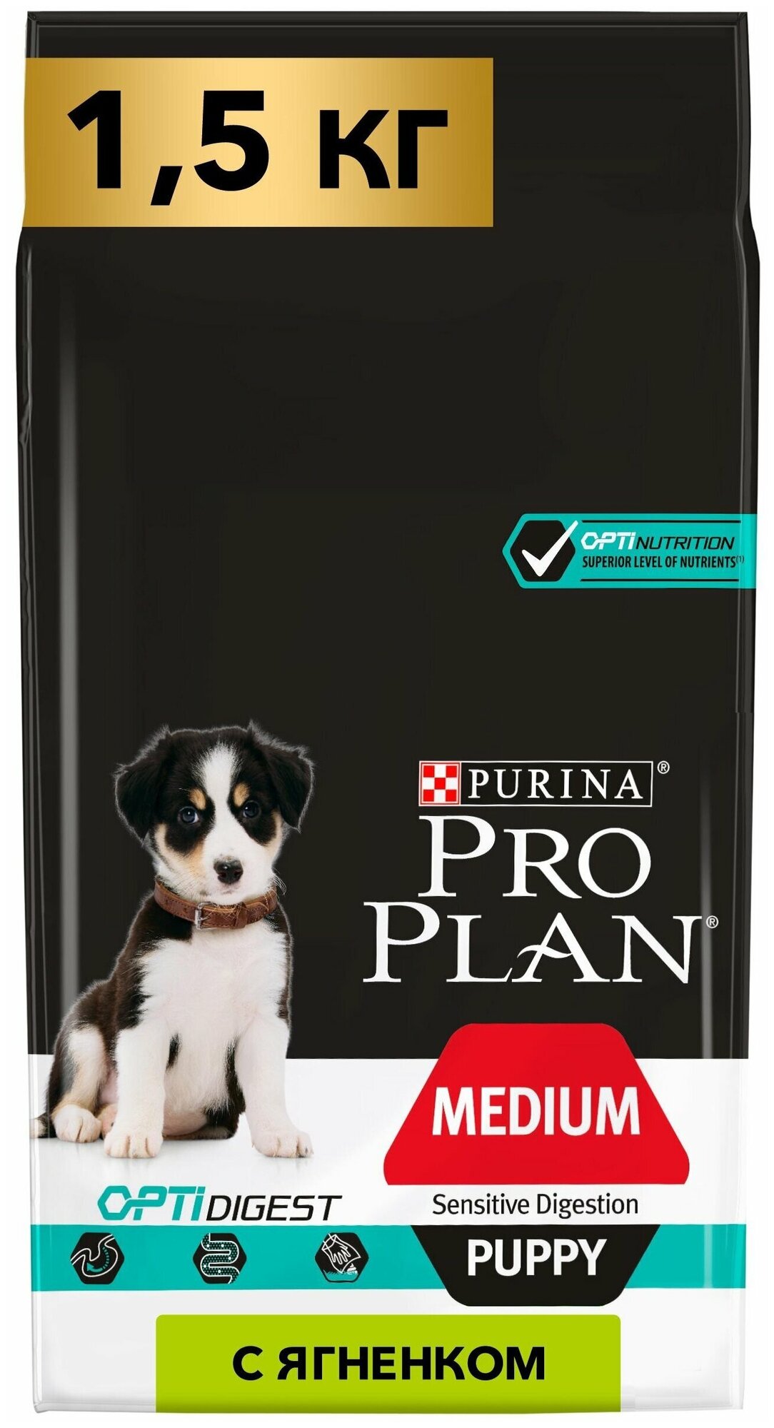 Сухой корм Pro Plan для щенков средних пород с чувствительным пищеварением с комплексом OPTIDIGEST® с ягненком и рисом, Пакет, 1,5 кг