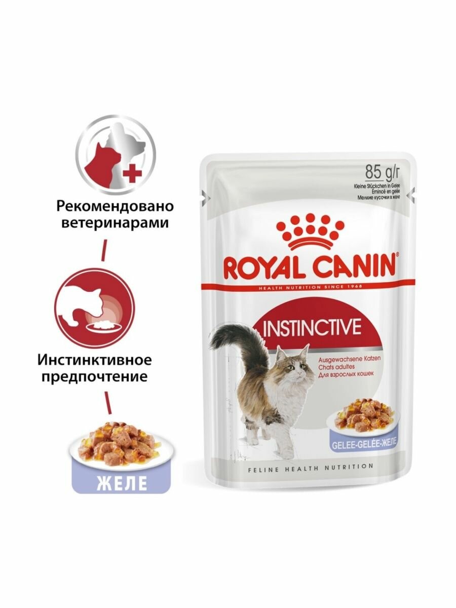 Влажный корм желе для взрослых кошек в возрасте от 1 до 7 лет Royal Canin Instinctive, 24 x 0.085 кг
