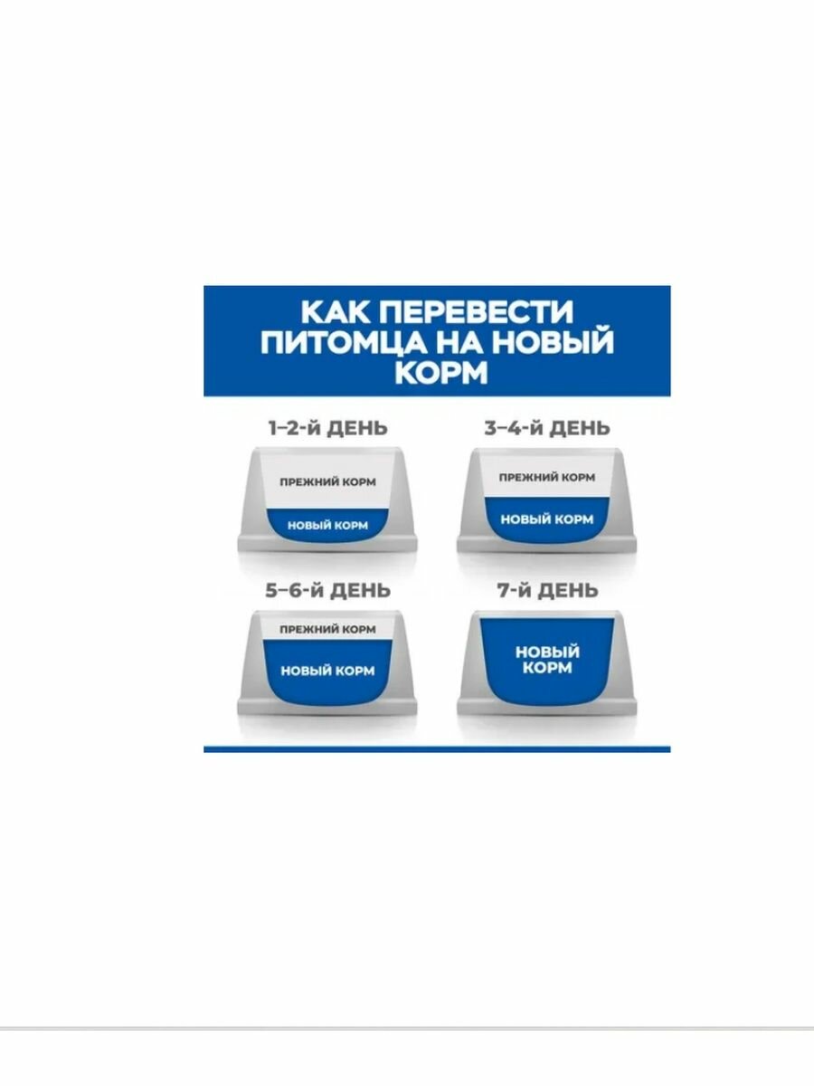 | Дозировка | Следуйте рекомендациям по кормлению, указанным на упаковке. Скорректируйте количество корма в соответствии с размером вашего питомца для поддержания оптимального веса. Если у вас есть сомнения, обратитесь к ветеринарному специалисту. Пробуете этот корм впервые? В течение 7 дней постепенно увеличивайте содержание нового корма по отношению к прежнему до момента его полного замещения. У собаки всегда должен быть доступ к чистой питьевой воде! Потребности ваших питомцев в питании могут меняться с возрастом. Уточняйте у вашего ветеринарного специалиста подходит ли текущий рацион вашему питомцу на каждом осмотре. |