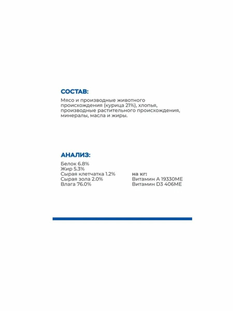 | Витамины | на кг: витамин А 6289 МЕ, витамин D3 586 МЕ |
