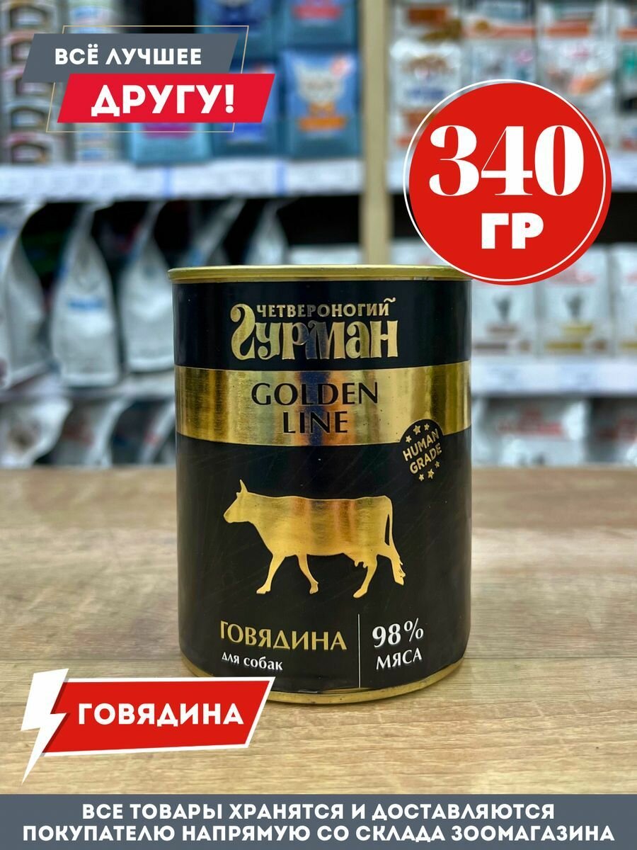 Влажный корм "Четвероногий гурман голд" консервы для собак из говядины в желе 340гр.