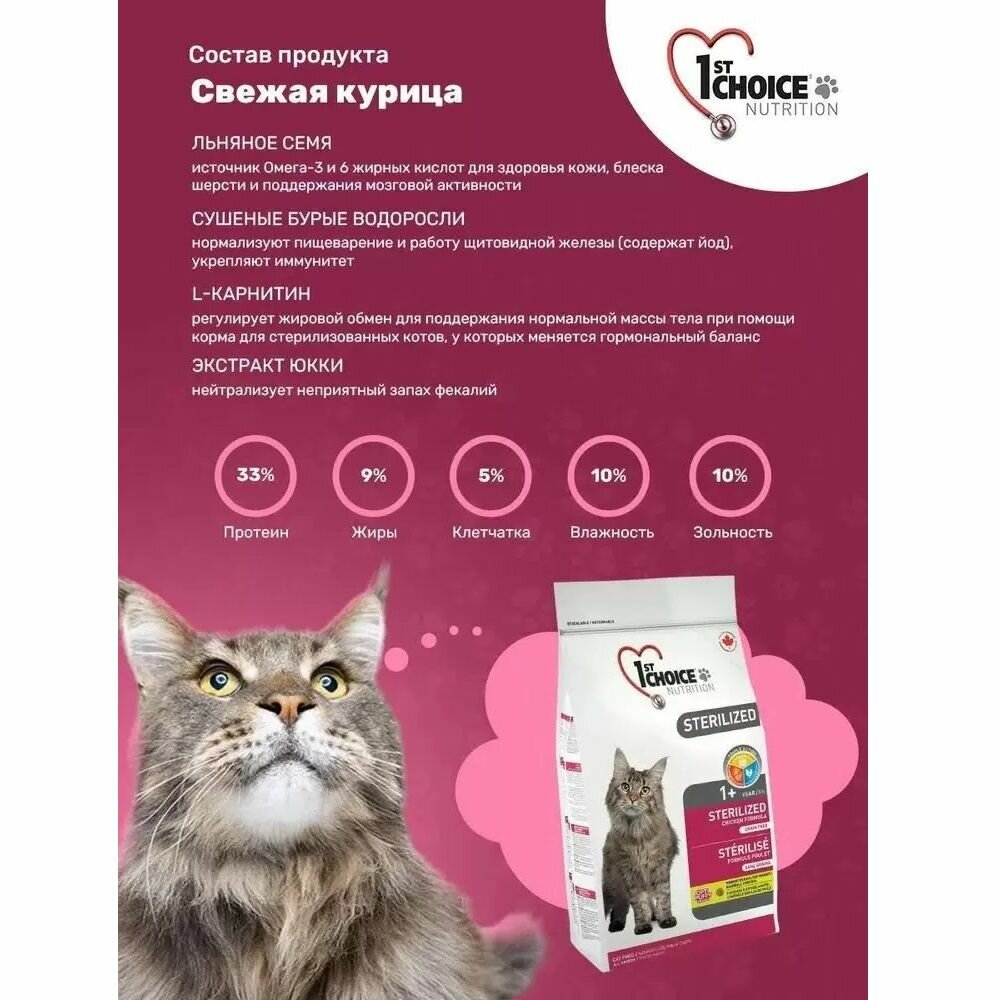 1St Choice Sterilized - Корм для стерилизованных кошек, беззерновой, с курицей (5 кг)