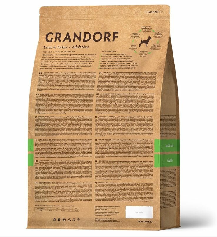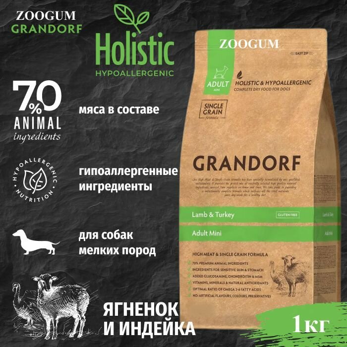 GRANDORF SINGLE GRAIN DOG ADULT MINI LAMB & TURKEY низкозерновой для взрослых собак маленьких пород с ягненком и индейкой (1 + 1 кг)
