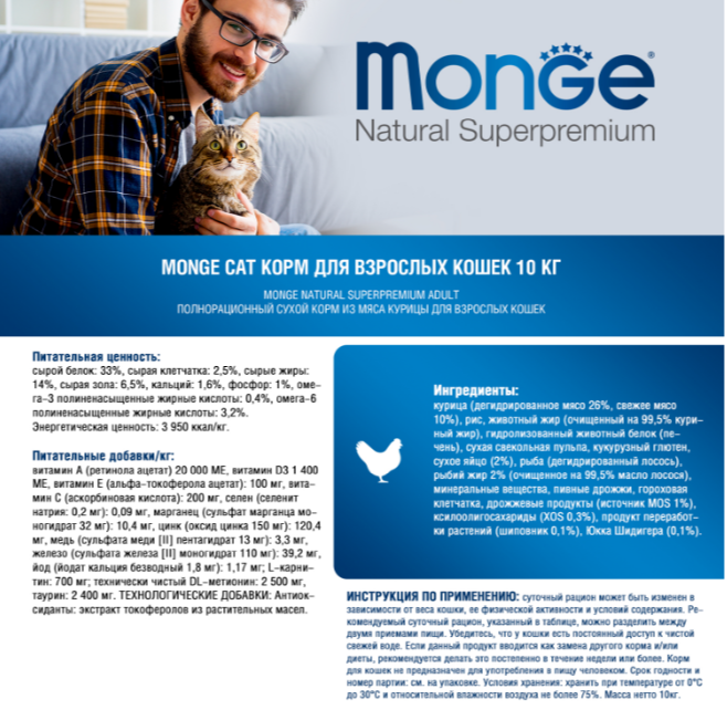 Ниже Вы можете прочитать отзывы на Monge Cat Adult - Сухой корм для взрослых кошек (10 кг), ознакомится с подробными характеристиками, посмотреть интересные обзоры и фотографии на Monge Cat Adult - Сухой корм для взрослых кошек (10 кг).