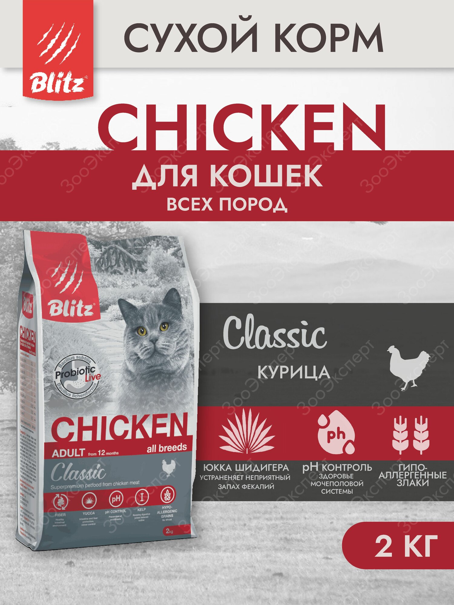 Купить Сухой корм для кошек Blitz с курицей 2 кгClassic