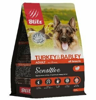Blitz Sensitive Turkey & Barley Adult Dog All Breeds для взрослых собак всех пород с индейкой и ячменем 15 кг