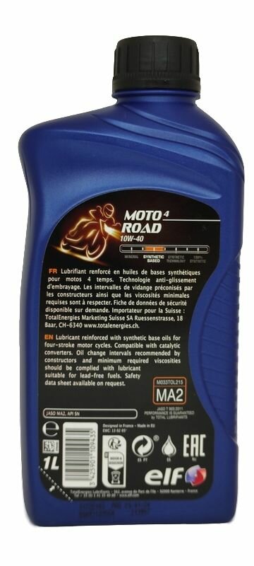 ELF 194965 ELF MOTO 4 ROAD (1L)_194965 масло моторное! для мотоциклов 10W40\ API SJ, JASO MA2, (синт.) 1шт