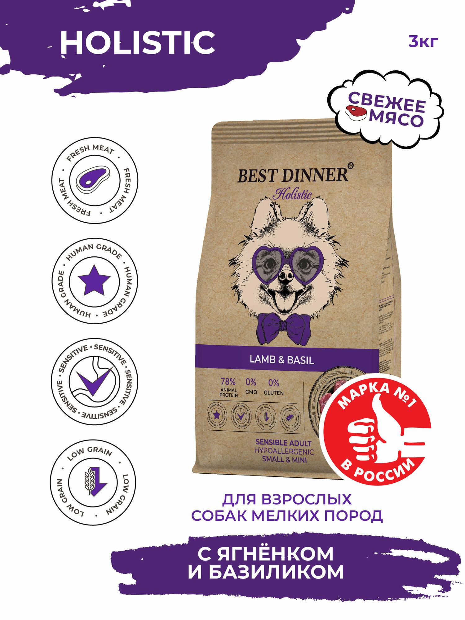 BEST DINNER Holistic Adult Sensible Hypoallergenic Small & Mini Lamb & Basil сухой гипоаллергенный корм для собак мелких пород с ягненком и базиликом (3 кг)