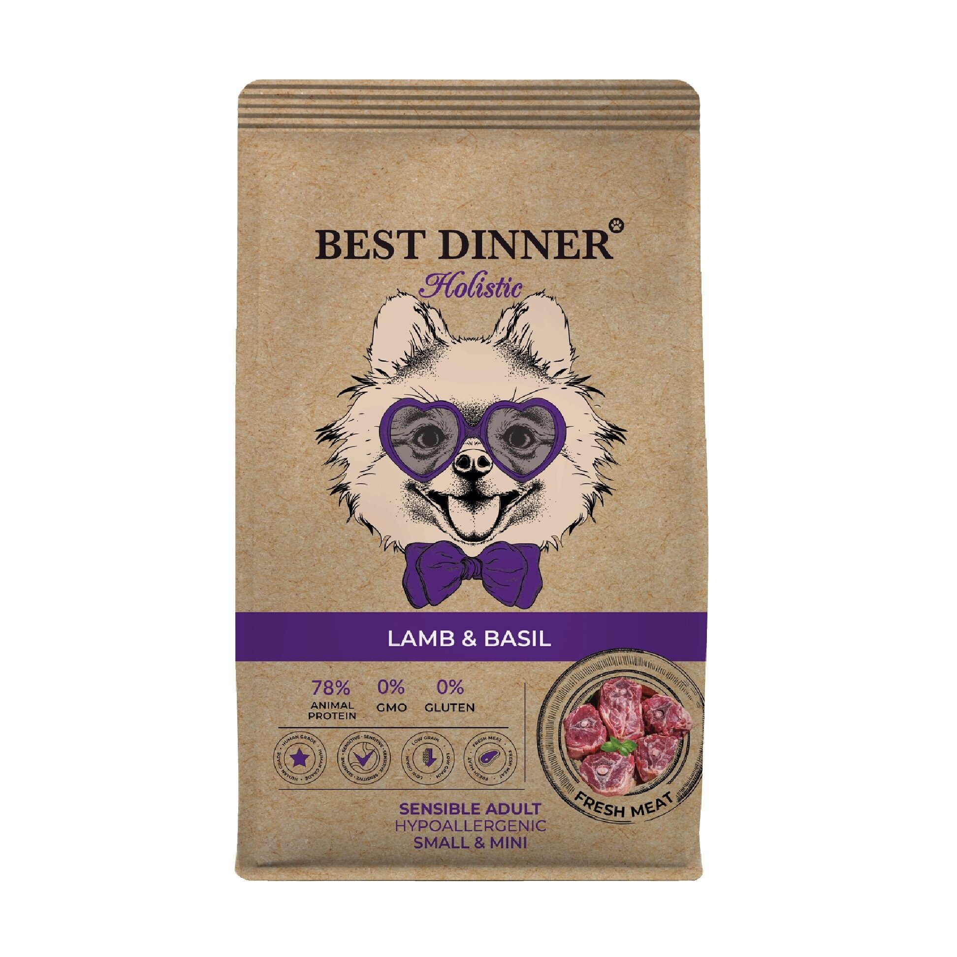 Корм сухой для собак мини, мелких и карликовых пород Холистик с ягненком и базиликом при чувствительном пищеварении, 1,5 кг Best Dinner (Бест Диннер)