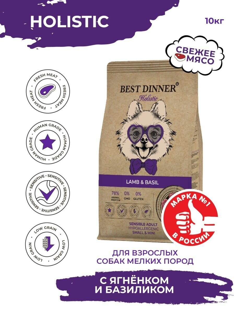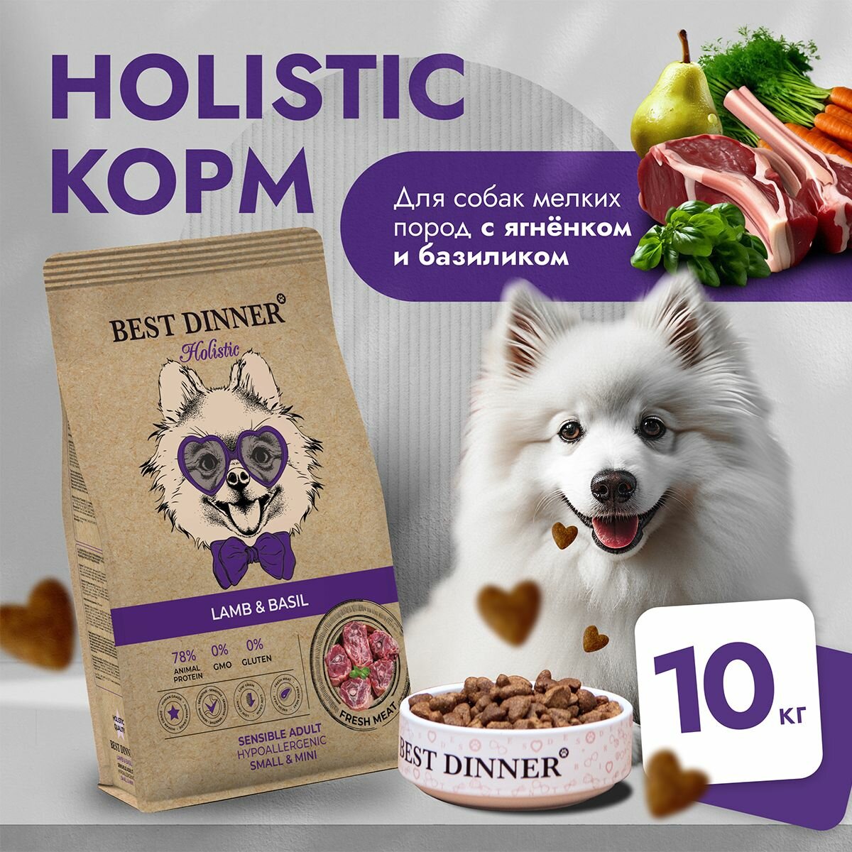 Сухой корм Best Dinner Holistic Adult Sensible Hypo Small & Mini для взрослых собак мелких пород с ягнёнком и базиликом 10кг