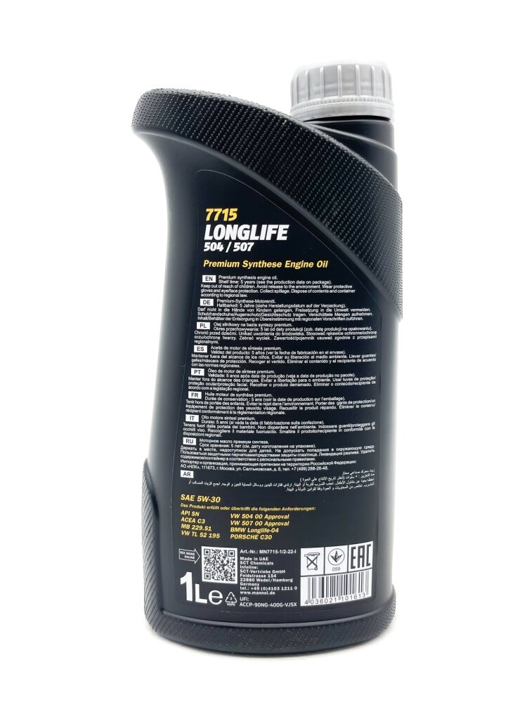 Синтетическое моторное масло Mannol 7715 Longlife 504/507 5W-30, 1 л, 1 кг, 1 шт
