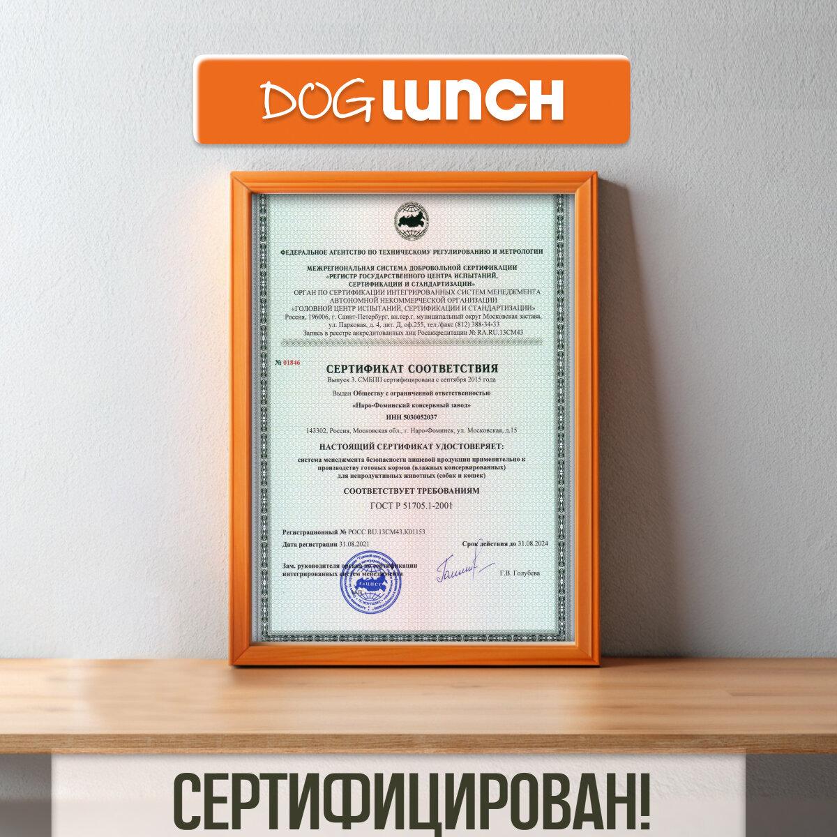 Dog Lunch консервы для собак Ягненок с потрошками и рисом в желе 750г х1шт