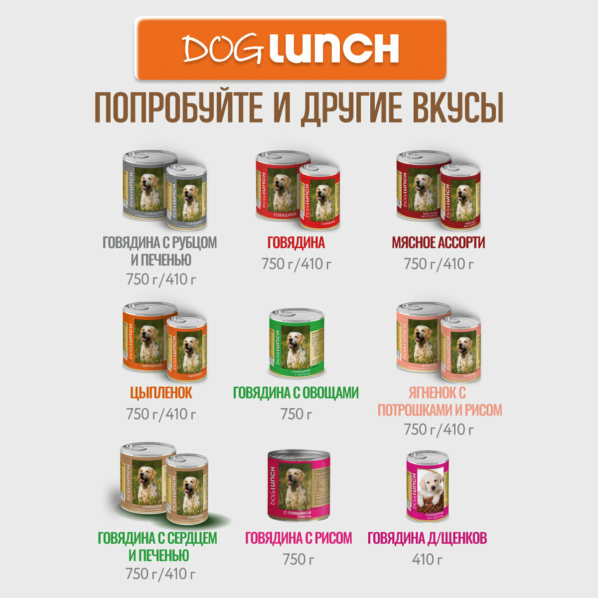 Консервы DOG LUNCH для собак ягненок с потрошками и рисом в желе 750 гр х 12 шт