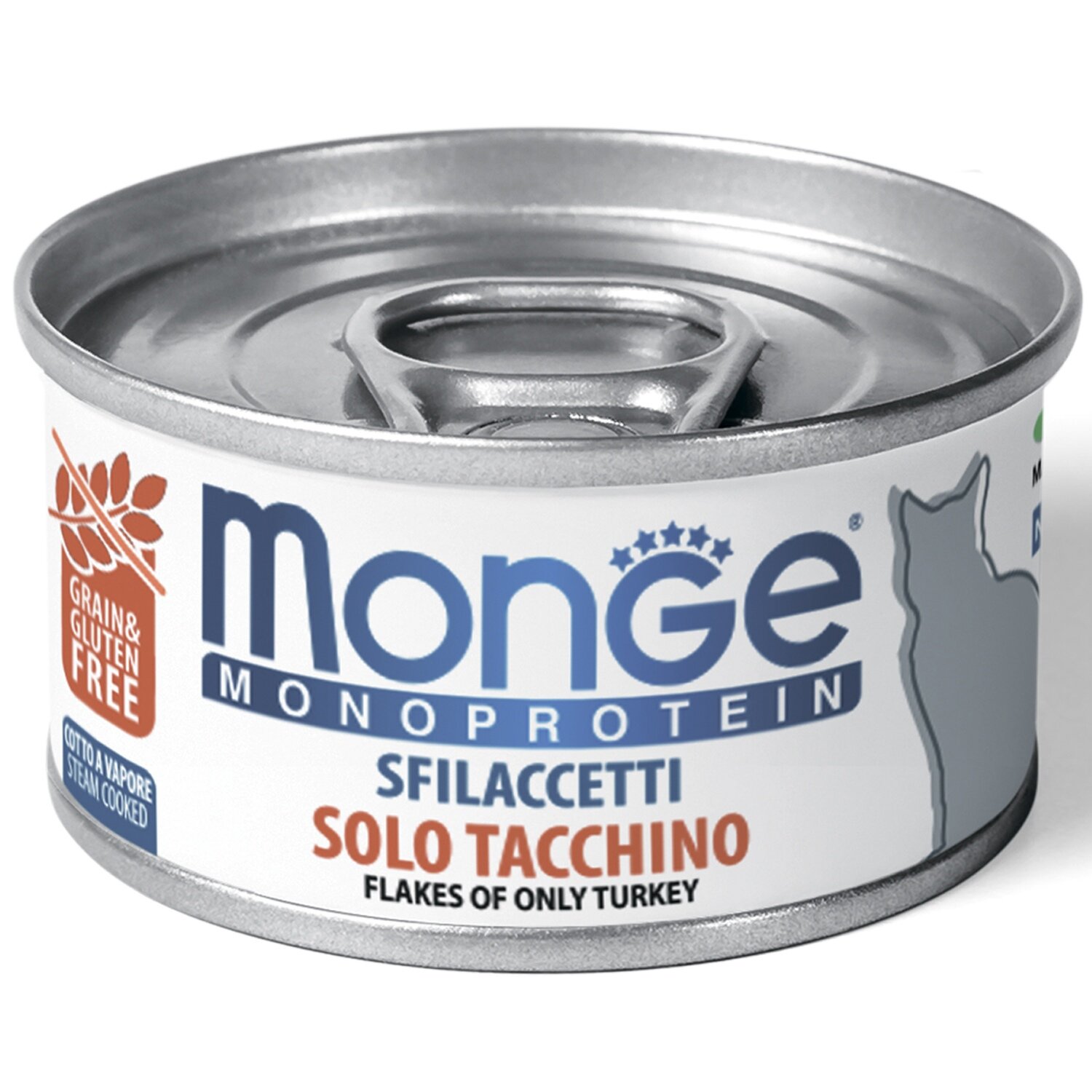 Влажный корм для кошек Monge Cat Monoprotein, мясные хлопья из индейки, консервы 24 шт по 80 г