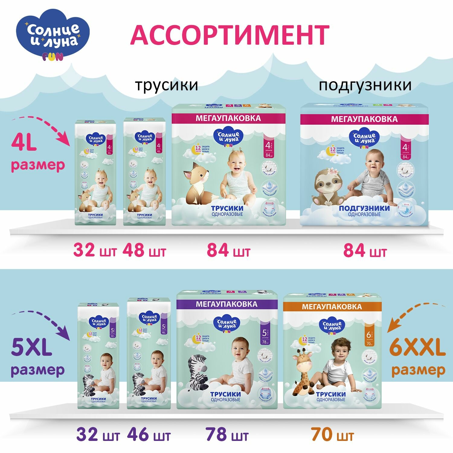 Подгузники детские 4 L размер 7-14 кг, 84 шт, солнце И луна FUN