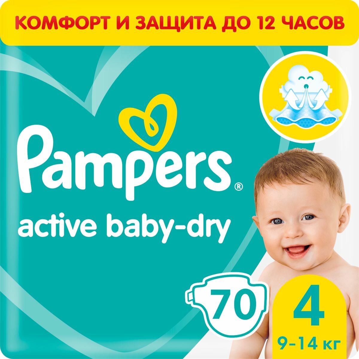 Подгузники Pampers Active Baby-Dry 9–14 кг, размер 4, 70 шт.