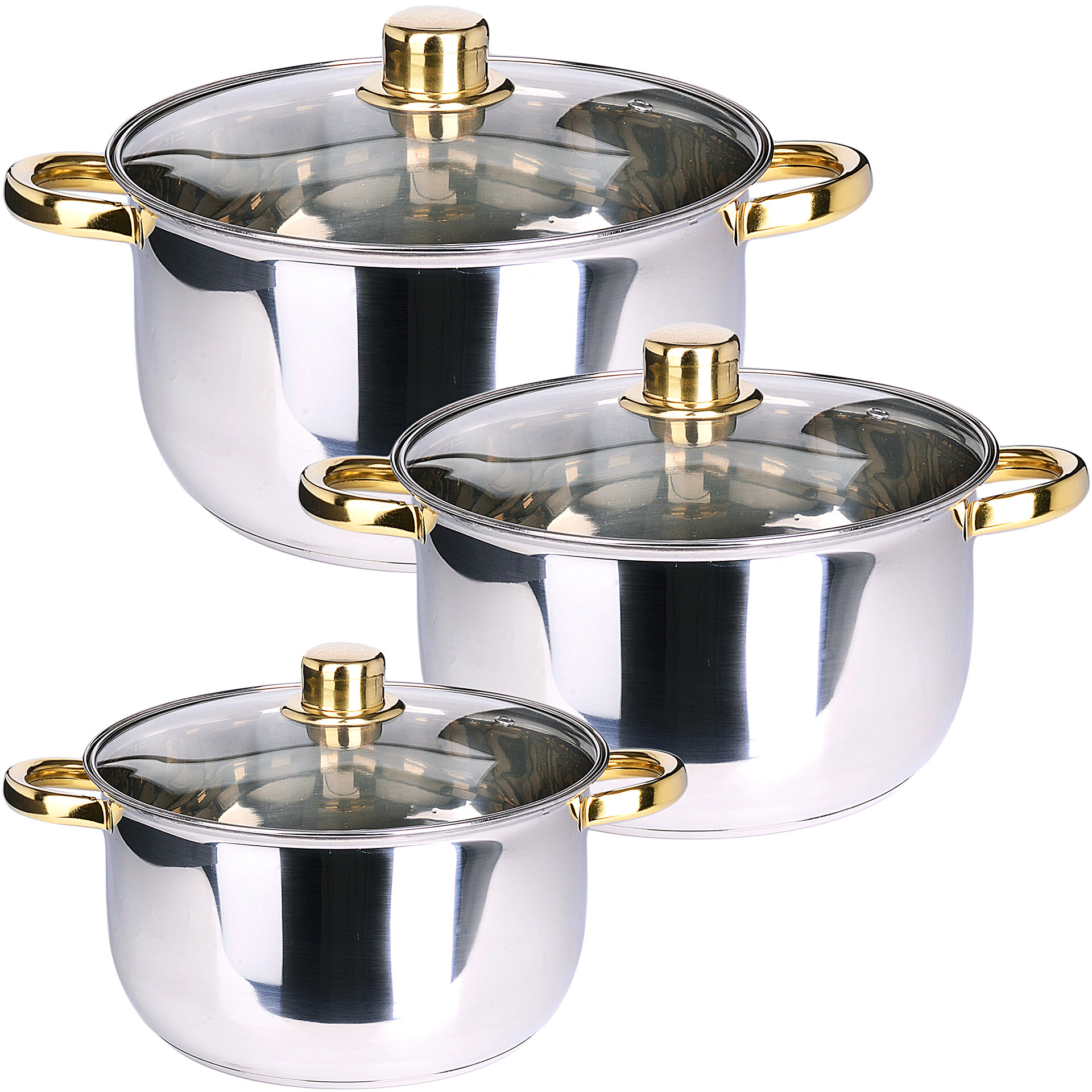| Дополнительная информация | материал крышек: стекло; материал ручек: сталь; кастрюли: 18х10.5 см, 20х11.5 см, 24х13.5 см |