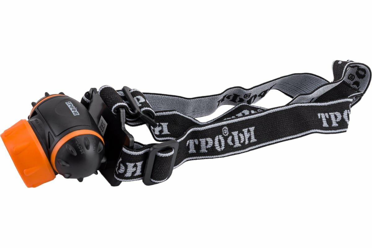 Фонарь налобный светодиодный Трофи TG7 на батарейках мощный яркий 4 режима оранжево-черный арт. Б0002227 (1 шт.)