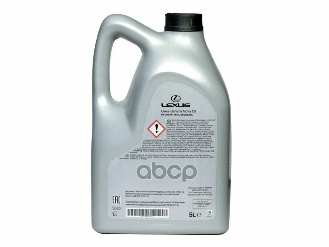 Масло моторное TOYOTA Motor Oil LEXUS 0W-30 5л синт. API SL/CF (пластик.тара)