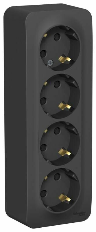 Розетка Schneider Electric Blanca с заземлением с защитными шторками антрацит для открытой проводки (комплект из 4 шт.)