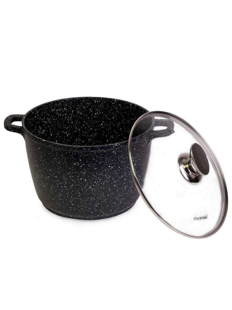 Кастрюля 6,5 л. из литого алюминия Kamille KM 4406 с мраморным покрытием (6,5 л. / черный)