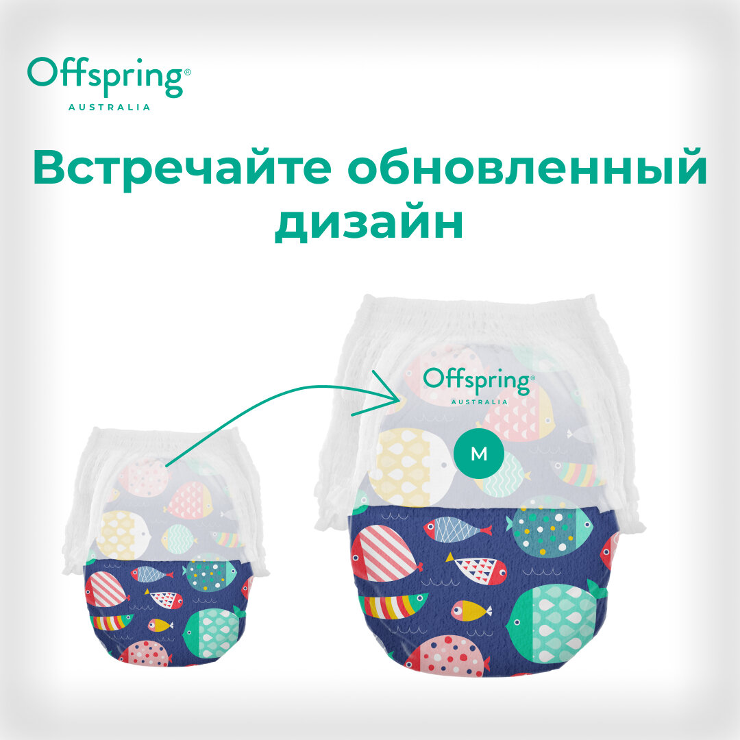 Купить Подгузники-трусики Offspring расцветка Рыбки M (6-11 кг) 42 шт