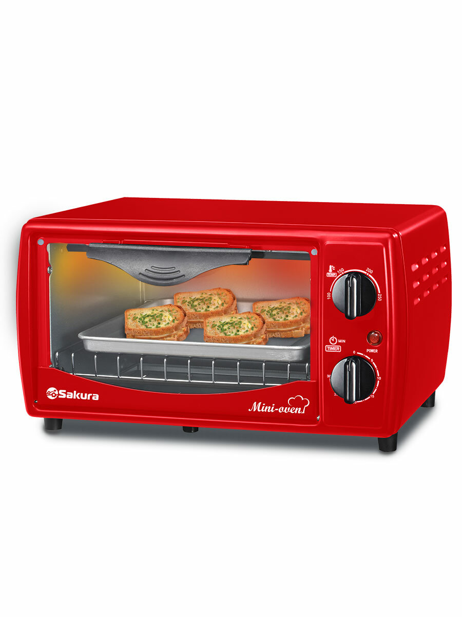 Мини-печь Sakura Sa-7018r, 1000 Вт, 10 л, 100-250С, таймер, красная Sakura 9438288 .