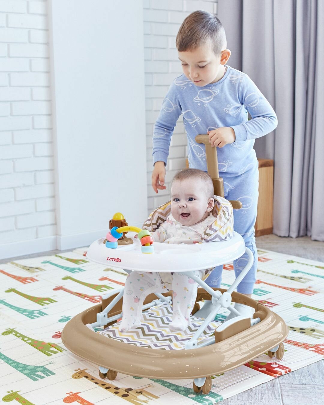 Ходунки детские CARRELLO Eterno, ходунки каталка для детей с игровой панелью, регулировка сиденья на 3 положения, кофе