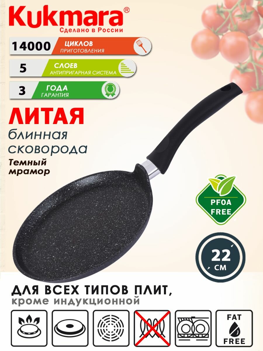Сковорода блинная KUKMARA Темный мрамор литая 22 см