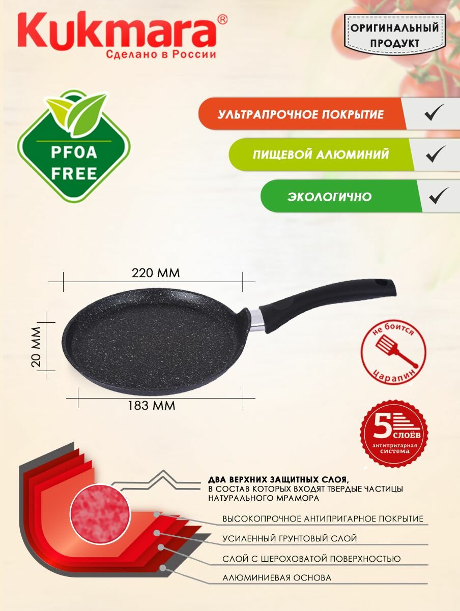 Сковорода блинная Kukmara d220 антипригарное покрытие темн. Мраморная - сбмт222а