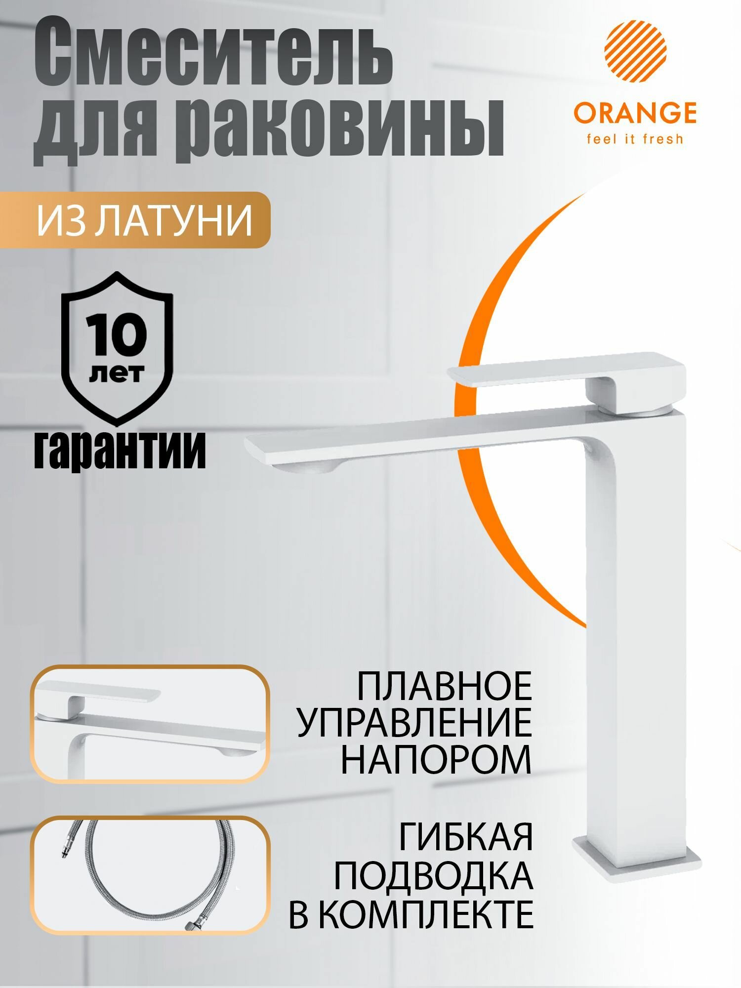 Смеситель для накладной раковины, высокий Orange Lutz M04-121w, белый