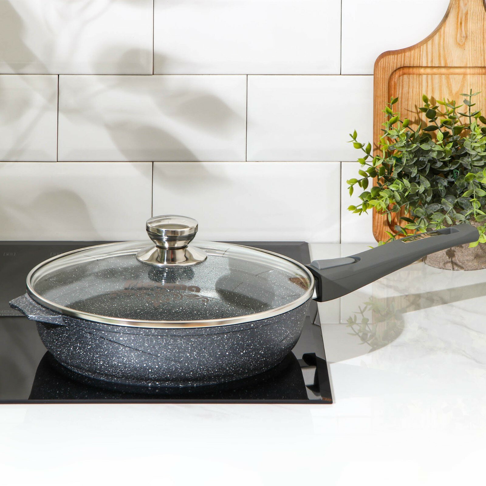 Сковорода с гранитным антипригарным покрытием крышкой и съемной ручкой 24 см Мечта