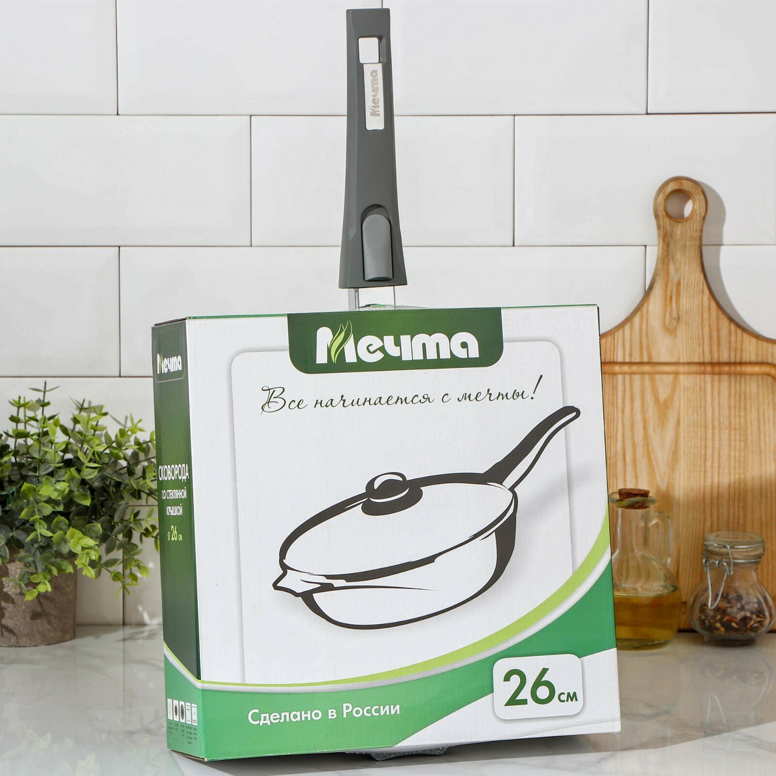 Купить Сковорода "Мечта" «Гранит», d=26 см, антипригарное покрытие, съёмная ручка, стеклянная крышка, серый