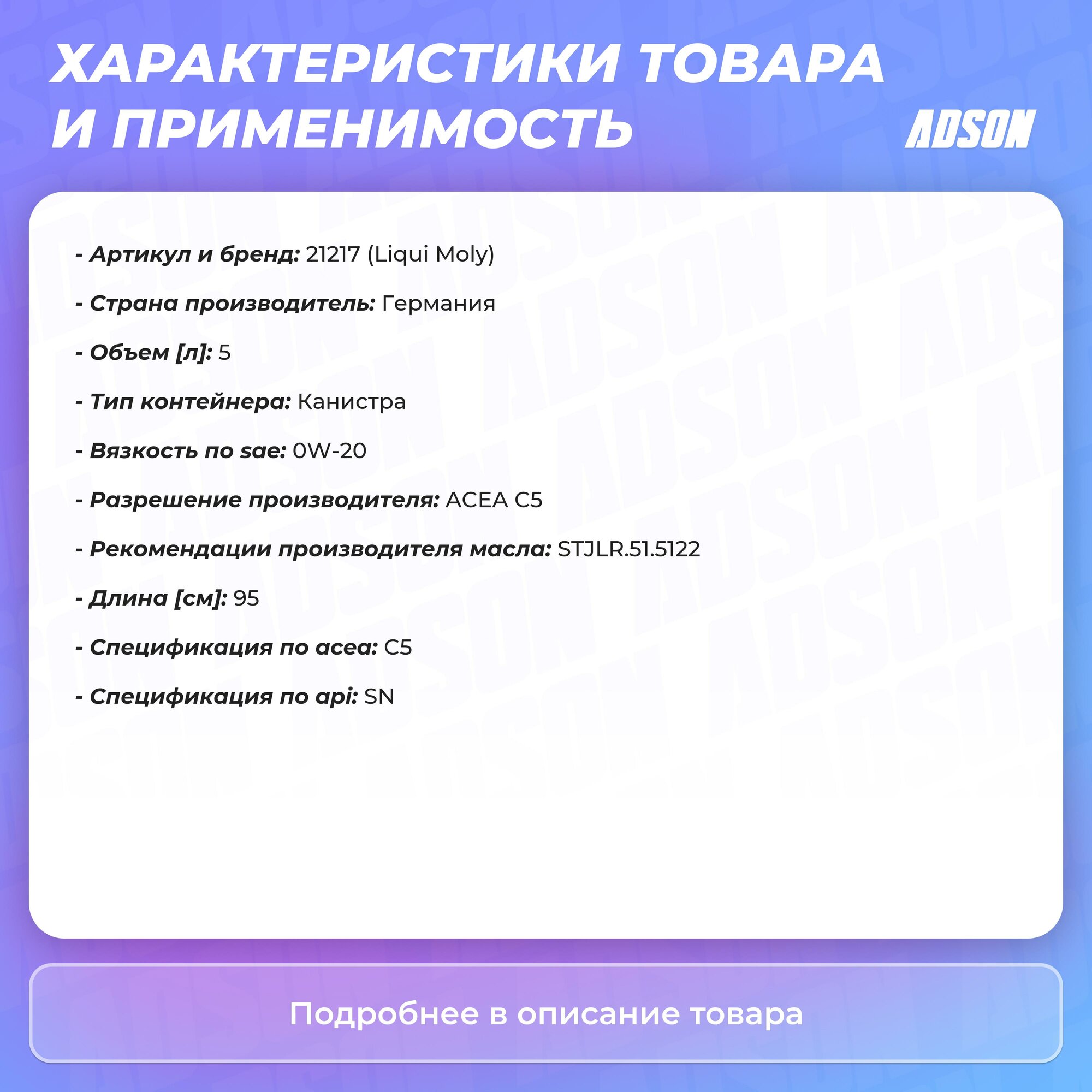 Масло моторн 0w20 liqui moly 1л нс-синтетика top tec 6300 sn/c5 mb: 229.71, liqui moly, 21216