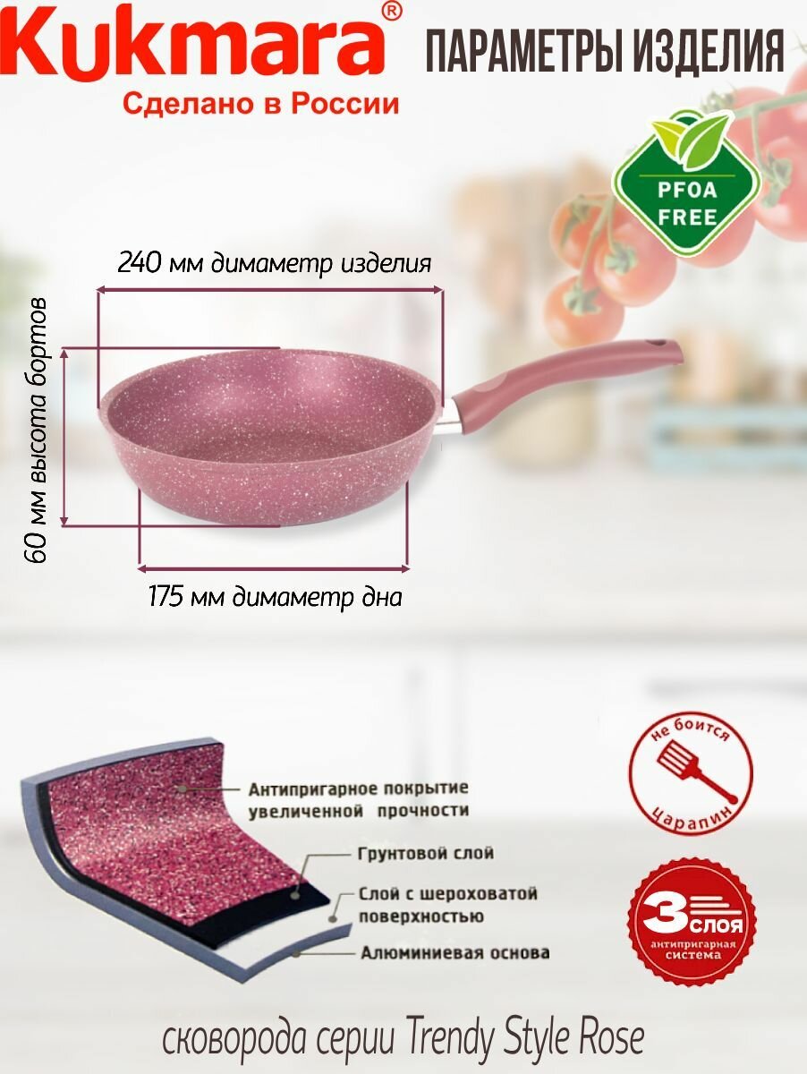 Сковорода 26см Kukmara Кукмара антипригар покрытие Trendy style цвет rose 260tsr