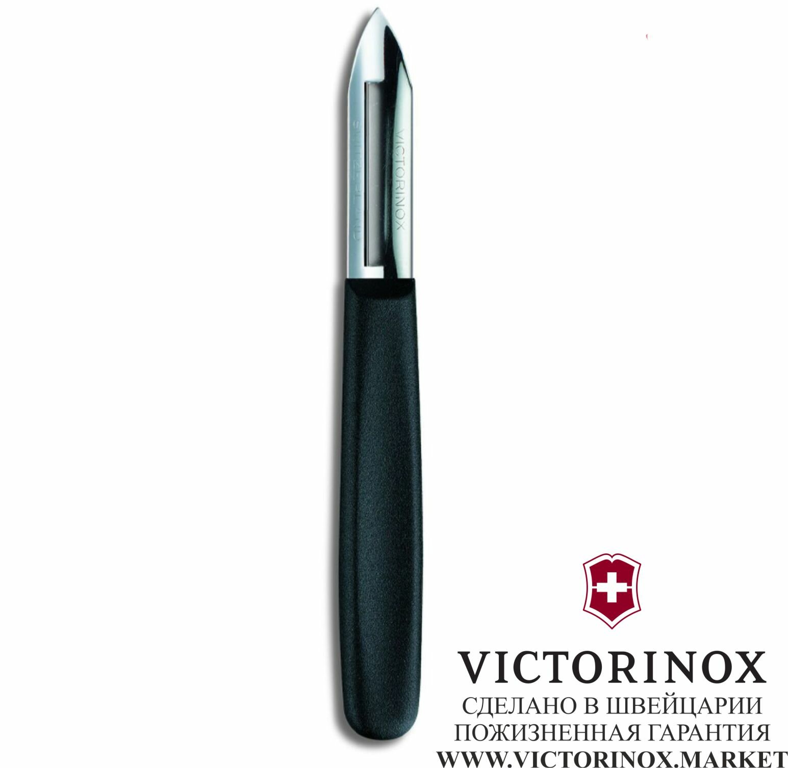 Нож для чистки картофеля VICTORINOX, двустороннее лезвие, нейлоновая рукоять, черный 5.0203