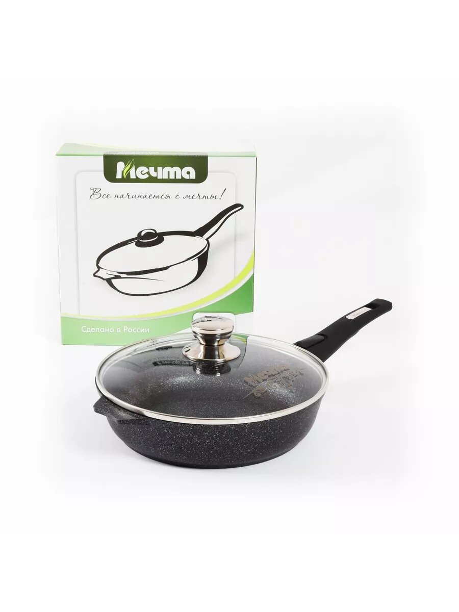 Сковорода мечта посуда Мечта Гранит black со съемной ручкой и стеклянной крышкой, 28 см, арт. с028802